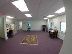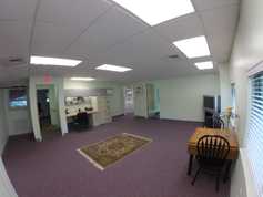 Furnished Living Room, TV, and Well-Lighted Personal Desk Area