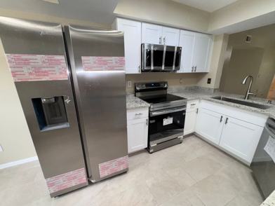 Welcome to the ANNUAL RENTAL - 2/2 CONDO IN PINE HAVEN WITH CARPORT, a newly renovated first-floor end unit located in the heart of Bonita Springs, FL. This condo boasts two spacious bedrooms and two full bathrooms, all freshly painted and featuring new tile flooring throughout. The kitchen is a chef's dream with its granite countertops, white shaker cabinets, and stainless steel appliances. The bathrooms have been remodeled with granite and white cabinets, adding a touch of elegance to the space. The condo also includes a convenient in-unit laundry. Step outside to your screened and covered lanai, perfect for enjoying the Florida weather. As a resident, you'll have access to a host of amenities including a community pool, tennis court, fishing pier, shuffleboard, bocce court, and pickleball. The property is also gated for added security and includes a carport for your vehicle. Experience the best of Florida living in this stunning condo.