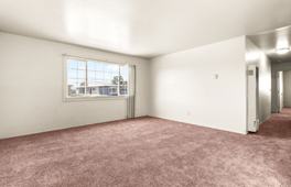 This beautiful 3-bedroom apartment is available now and features fresh updates throughout. The interior showcases a clean, modern look with freshly painted walls, plush carpeting in the living areas, and durable tile flooring in the kitchen and dining space. The kitchen is a standout feature, offering plenty of room for a dining table, bright white cabinets, and speckled granite-look countertops.