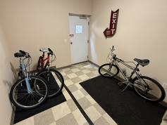 Entire building, parking, and grass areas are fenced in from the main street; semi-private entrance from the rear via a one-way-in & out street.