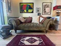 This one-of-a-kind space is perfect for someone who appreciates character and charm. With colorful walls and artistic touches throughout, this unit is anything but boring. The cozy vintage sofa, flat screen TV, foldable dining table, and thoughtfully designed layout make it a comfortable and functional space to call home. There's even a den for extra storage and a private balcony for fresh air.