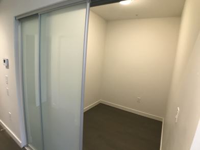 New, unfurnished and well lit 1 bedroom and a den. Close to central Richmond and nightlife. Walking distance to large complex with Walmart and other amenities. One secure underground parking lot.