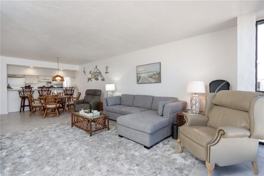 Nestled along the shore of Little Hickory Island, Seascape is a condo association of 3 buildings with amazing gulf views. Enjoy this 2-bedroom, 2-bath, 5th floor condominium. Western exposure to a take in the stunning sunsets from your unit. Features include a comfortable living area with sofa, chairs, flat screen TV, dining for 4 people and fully equipped kitchen. Primary bedroom with new vinyl flooring, king bed, and ensuite bathroom. Guest bedroom with two twin beds and guest bathroom in hallway. Wireless internet and cable included for your convenience, plus a Washer and Dryer in the unit. Amenities include a large swimming pool and lounging area, walking access to miles of beach, tennis and pickle-ball courts and stunning sunsets. The property also includes kayak access to the bay or the gulf.