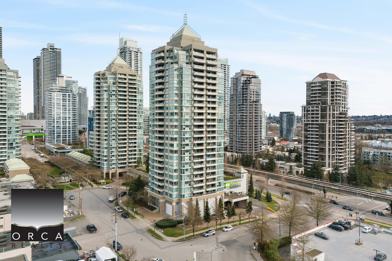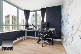 Live steps from Save-On-Foods, Madison Daycare, Brentwood Mall & SkyTrain in this fully renovated, north-facing 2-bed, 2-bath + den (9x9, ideal office or 3rd bed). Enjoy mountain views, floor-to-ceiling windows, flat ceilings, vinyl flooring & smart dimmable lighting. The kitchen features LG smart appliances, black quartz counters & backsplash. Cozy gas fireplace (gas included), custom wardrobe, blackout curtains & new baseboards throughout. All rooms open to a 160 sq ft covered balcony. Building amenities: gym, sauna, hot tub, lounge & garden. Book your viewing today!