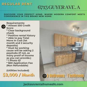 Pet FriendlyWelcome to 6713 Guyer Ave. #A, a spacious and inviting 3-bedroom, 1-bathroom home available for $2,000 per month with utilities included. This well-maintained residence blends comfort and convenience, making it a wonderful choice for families or anyone seeking a stylish, move-in ready home in a great neighborhood.