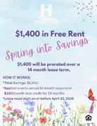 *The Estimated Total Monthly Leasing Price reflects the Adjusted Base Rent plus our Resident Benefits Package, which includes required Renters Insurance, Move-In Concierge, $1M Identity Protection, Resident Rewards, Filter Delivery (where applicable), and Credit Building. Estimated Total Monthly Leasing Price does not include utilities or optional/conditional fees, such as: pet, utility service. To learn more about additional leasing fees and requirements, please contact HomeRiver Group at 833-617-0763.
