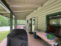 Private log home located in Orland. Home features 3BR/1BA with open living room/eat-in kitchen, covered front porch, walk-out basement, bath with laundry & detached garage with heated bonus space. Step outside and find a spacious patio with outdoor kitchen/shower and grilling area.