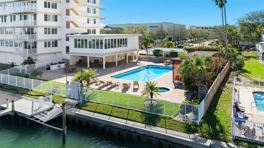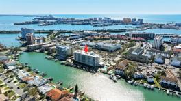 Fully Furnished 2 Bed 2 Bath Clearwater Beach Condo nestled on the 2nd level of Island Way Towers, a modern waterfront building right in the heart of Clearwater Beach! Enter the condo to a bright foyer with a coat closet and landing on the left side and a dazzling kitchen and dining room on the right side featuring glistening quartz countertops, solid wood cabinetry, quality stainless steel appliances and a sparkling tile backsplash. The living room opens to enormous sliding glass doors and a balcony beyond. Fantastic outdoor living thanks to an expansive pool deck lined with chaise loungers and multiple cabanas, a barbeque area and most importantly a large heated swimming pool and piping-hot jetted spa, all with stunning waterfront views! Amazing Panoramic Intercoastal Water views from the Community Party Great Room situated just down the hall which includes a party kitchen, huge dining set and enormous living room with lots of seating and a large flatscreen TV, perfect for entertaining large groups or just enjoy it yourself. Island Way Towers also offers a cozy front lobby and a nicely equipped community fitness room. Back to the condo details: The primary suite includes a plush bedchamber, full ensuite and of course a walk-in closet. The 2nd bedroom has a built-in closet and comes furnished with a hide-a-bed sofa for max flexibility. This beautifully appointed home comes furnished with the highest quality furniture and decor, locally sourced and professionally curated. A storage cubby is assigned (#4) on the 2nd level. A large bedroom sized storage room located on the ground level with waterfront views, perfect for waterfront "garage party" or for storing bikes and kayaks etc... Assigned covered parking space #22 is included and plenty of extra parking for residents and guests. Convenient location steps away from fine dining and shopping, yet only a mile from the high energy sugar-sand beaches, perfect location for optimal Clearwater Beach living! See 3-D Virtual Tour.