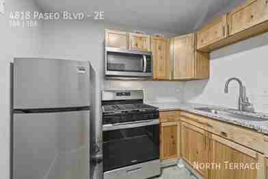 4818 Paseo Blvd #2E, Kansas City, MO is a 1 bedroom, 1 bathroom apartment for rent. It is located in the Eastern 49-63 neighborhood of Kansas City. It has apartment amenities including central heat, hardwood floor, on-site laundry, assigned parking, in-unit laundry, ceiling fan, dishwasher, microwave, and air conditioning. Cats and dogs are allowed, making it a pet-friendly apartment.