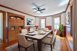Unique for its size and detail: This well-maintained second-floor apartment home offers a massive 1,400 square feet floor plan with tall ceilings and abundant windows. The layout includes three bedrooms, a formal dining room (or office), and a large kitchen with oak cabinets, gas stove, stainless appliances, and plenty of counter space. Just off the kitchen is a dedicated laundry room with in-unit washer and dryer.