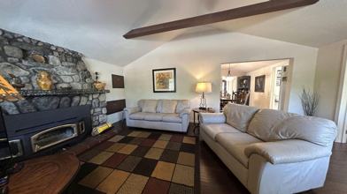 This gorgeous 3 bedroom 2 bathroom home located in the quiet Mountain Home Village Community is available now! Fully furnished and ready for move in! Enjoy this secluded property located off of Highway 38 with Mill Creek directly behind the home and only minutes away from local shopping. With multiple outdoor patio spaces to sit and enjoy, this home is sure to impress. All bedrooms include portable a/c units and ample closet space. The primary suite is oversized and is set up to include a small office space and walk in closet complete with built ins. The kitchen includes all stainless steel GE appliances and has laundry room located inside the home with washer and dryer included! If you're looking for a place away from the hustle of the city, this home is for you! Water & Sewer included.