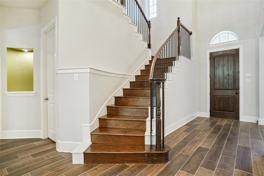Inside, you'll find wood-look tile flooring on the main level and rich wood floors upstairs, including all bedrooms and staircases. The chef-inspired kitchen features granite countertops, upgraded cabinetry, designer lighting, and recessed can lights, opening to a welcoming family room with backyard views.