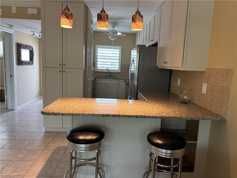 Beautiful updated kitchen with custom cabinetry, granite counters and stainless appliances. Island bar between kitchen and living room provides a great spot to enjoy with friends. Enclosed lanai overlooking landscaped area, large trees and Broad Ave South. King sized bed in Master and Guest Bedroom is set up as a den with pull-out bed for unexpected guests. Fabulous location only 1 block to Third Street South shopping & Dining. and 3 blocks to Naples white sugar sand beach. Carport and bike storage area are all included