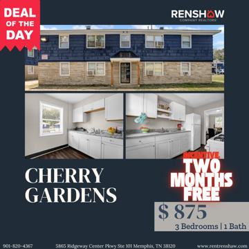 The Cherry Gardens Apartment Community has been completely renovated with all brand new features. The living rooms are wide and open spaces that feature large windows and two entry ways to the rest of home. The dining room and living share the front of the home and allow for a lot of natural light. The bedrooms feature brand new solid flooring, ceiling fans, and large closets. Kitchens include range, fridge, upgraded white cabinets, and built-in shelves. Laundry is available on-site and is constantly monitored for cleanliness and operation. The grounds have built-in BBQ stands, conveniently placed dumpsters along the property lines, and state of the art laundry facility.