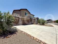 This spacious two-story home features 4 bedrooms and 2.5 bathrooms across 2,630 sq ft on a generous 7,754 sq ft lot. The kitchen is equipped with essential appliances including a dishwasher, garbage disposal, microwave, oven, and refrigerator, and showcases white cabinets with a black subway tile backsplash. The open-concept layout seamlessly connects the kitchen to the living area, which includes a cozy fireplace. The primary suite offers separate baths and a large walk-in closet with plenty of space. Three additional spacious bedrooms provide plenty of room for family or guests. The laundry room includes washer and dryer hookups for convenience. Enjoy a low-maintenance gravel backyard with a covered patio, perfect for relaxing or entertaining.