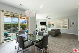Located in the heart of Downtown Palm Springs in the illustrious Movie Colony neighborhood, this 2-bedroom, 2.5 bath condo features an immaculate floor plan, distinct Spanish accents and architecture, impeccable desert views and flexible positioning as a place either for getting work done peacefully, or venturing into town on a spontaneous adventure after entertaining guests at sunset. The downstairs is spacious and optimized for an indoor/outdoor flow. The perfect amount of blue accents, quartz, stainless steel and stone throughout the living, dining, kitchen and outdoor areas create a cohesive oasis vibe. Large floor to ceiling windows showcase the sparkling pool and entertainment area outside, which sits nestled amongst a desert backdrop of palm trees, mid century modern architecture and the San Jacinto Mountains. Upstairs features a second living room area that can easily be utilized as a reading nook or game room, and more stunning mountain views. A large bedroom with ample storage space and an en-suite bathroom also features views of the mountains, while the velvety primary suite boasts an impressive walk-in closet, a soaking tub perfect for a relaxing desert night and a romantic Spanish balcony that overlooks the Palm Trees of the Movie Colony neighborhood. A sturdy 2-car garage features epoxy floors and ample storage space. Call for pets. Long term renters preferred, open to short term leases of 60-90 days at $9,000/mo.