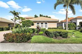 This beautiful home is nestled on a quaint street with sidewalks manicured lawns and gas light style mail posts. That style continues up the paver driveway directly into the attached 2 car garage. The lovely landscaped yard surrounds the home. The large screen lanai off the rear of the home and adjacent to the Primary Suite? It overlooks #17 tee box, but the golfers won't even know you're there lounging in the peaceful shade of a banyan tree. The grand driveway approach, the 2 story exterior covered foyer, maintenance fee exterior, HOA managed yard meet you outside and the freshly painted interior is simply spectacular. Soaring tray ceiling, crisp white trim on a neutral pallet. Features large tile perfect for any decor you wish to display with high quality carpet in bedrooms. The open floor plan is bold and bright and the split floor plan offers more than you expect. Large formal dining on front of home streaming with light could be optioned for whatever you decide it should be. The 2nd bedroom tucked back with a roomy walk in, the double door den..whatever you need. A gorgeous furniture piece could serve as a closet for a 3rd bedroom. The Primary? amazing! Dual walkins, a soaking tub (not jetted for the most relaxing soak) a vanity area, large walk in shower and the bedroom room for any size bedroom furniture and direct access to screened lanai. The dedicated laundry space and additional storage as well as the open center of the home. The kitchen. Granite counters, gorgeous cabinetry. Paint is fresh inside in 2023 and outside in 2022. The Venetian Golf & River Club is located in North Venice, easy access to I75 at Laurel Rd. This golf cart friendly community has one of the most beautiful entrances in Venice and feature heated pool, pickleball, tennis, basketball, nature trails, sidewalks and a kayak launch. Dog park in the near future plans. Golf membership is optional but having your own cart to meet friends at the River Club. Come and see what Venice and the Venetian Golf & River Club offers you when you consider this beautiful house, your next home.
