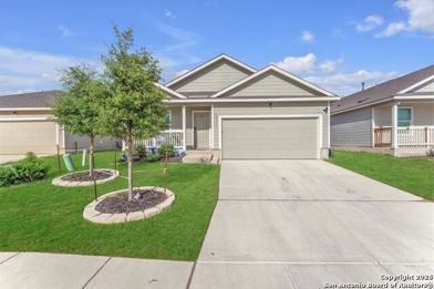Welcome to 6919 Pail Pl in the vibrant Silos community-conveniently located near Hwy 211, Hwy 90, and Lackland AFB. This well-maintained 4-bedroom, 2-bath home offers an open-concept layout with stylish finishes and no carpet throughout. The kitchen features granite countertops, gas cooking, stainless steel appliances, and a Samsung Bespoke fridge and matching microwave-both in white. Enjoy the spacious primary suite with a walk-in closet and single vanity bath. Step outside to a large concrete back patio with a retractable awning, perfect for enjoying both sunlight and shade. You'll also appreciate the retractable screen door and outdoor security cameras for added comfort and peace of mind. The Silos offers great amenities including a pool, park, and clubhouse. Move-in ready and packed with upgrades!