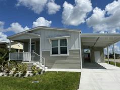 Welcome to Buccaneer Estates a 55+ age qualified active vibrant community in North Fort Myers. Stunning Waterfront views! This spacious home sits on a desirable corner lot with a surprise lake views from your cozy front porch! Inside, a unique 45-degree angled island anchors the open kitchen and living space-perfect for everyday living and casual entertaining or a game of cards. The kitchen offers plenty of cabinets, plus island drawers and extra storage. Enjoy tray ceilings in the living room, along with a separate dining area that fits a full-size table. The front guest bedroom is next to the guest bath, and a second flex room with French doors can be used as a bedroom, office, or den. The primary suite is tucked at the back with a private bath, double vanity, walk-in shower, and a large walk-in closet. Call today and make this your piece of paradise before someone else does!