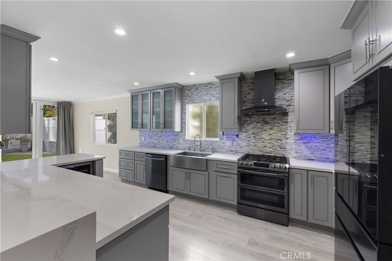 Completely Remodeled 4-bedroom, 3-bath Smart Home designed for modern living and effortless entertaining. Inside, you’ll find sleek vinyl floors, a spacious living room, family room, and a remodeled kitchen with a stunning waterfall breakfast/buffet bar, stainless steel appliances, wine fridge, and alkaline water system. The family room flows seamlessly into the yard through tall accordion glass doors—perfect for indoor/outdoor dining and gatherings. The primary suite boasts a wall of closets and a spa-like bathroom with dual sinks and a walk-in rain shower. Three additional bedrooms offer flexibility, including a private en-suite in the 4th bedroom. A hidden laundry room—tucked behind a bookcase—features washer, dryer, and extra storage. Enjoy the low-maintenance yard with a covered deck strung with lights, artificial lawn, BBQ space, and an enclosed side yard for gardening or storage. A separate 154 sq. ft. bonus space is ideal for storage, yoga, or playroom. This eco-friendly home includes solar panels (owner estimates $400/month savings), a full home water filtration system, smart controls for lights and appliances (phone/Alexa enabled), and a security system with cameras. Located near parks with playgrounds, sports fields, and a community center, plus bike paths leading to beautiful Lake Balboa—this home blends luxury, convenience, and lifestyle in one perfect package.