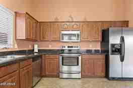WOW!! This home is amazing. HIGH CEILINGS. TWO LARGE BEDROOMS & DEN . Den can be 3rd BR since it has closet space. Extremely nice home in great neighborhood. Tile roof. Vaulted ceilings with plant shelves create airy feeling with ceiling fans in every room. Split bedroom floorplan with walk in closets. Beautifully, upgraded kitchen with GRANITE COUNTER TOPS, wood cabinets & stainless steel appliances. Bay windows in kitchen & bedroom give inviting, expansive feeling. Ceramic tile flooring in living room & kitchen. Large laundry room, Newer central air/heater. Water heater, exterior paint (4 yrs), Desert landscape front & back, covered patio. Two parks within community with playgrounds. Close to Cardinal Stadium, aquatic center & library. This is a great rental property,