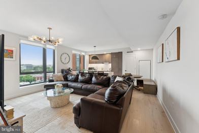 Welcome to Navy Yard! This stunning 1-bedroom, 1.5-bath condo offers modern elegance and unbeatable convenience, perfectly situated in one of D.C.'s most vibrant neighborhoods-just steps from dining, shopping, Metro, and the waterfront. As you enter, you're welcomed by a spacious open floor plan designed for both comfort and entertaining. The gourmet kitchen features a striking granite waterfall island, stainless steel appliances, modern backsplash, and sleek silver fixtures-all seamlessly flowing into the living area. The living room is anchored by a custom light fixture and an entire wall of windows showcasing scenic city views and flooding the space with natural light. The spacious bedroom includes double closets, a stylish barn-style sliding door, and a luxurious en-suite bathroom. The en-suite features dual vanity sinks, ample cabinet storage, and a walk-in shower adorned with elegant tile work. Building Amenities Include: Fully equipped fitness center, billiards, party rooms, outdoor pool, rooftop and concierge services. This home is actively for rent for $3500.
