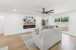 food prep and eating at the breakfast bar. All new appliances including a 5 burner gas cooktop range. Enjoy relaxing in your living area with a new stylish 60 inch horizontal fireplace and wood mantle. The new primary