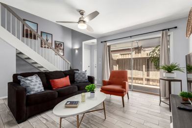 Pet FriendlyAttractive 2 bed, 1.5 bath townhouse in amazing Scottsdale location! Downstairs enjoys large living room, galley style kitchen with white cabinets and butcher block tops, half bath, dining area and laundry room. Kitchen looks out into living room for that great room feel. Upstairs has two bedrooms with vaulted ceilings and shared bath. Bath has been updated with an attractive vanity and subway tile shower surround. Main bedroom has walk-in closet. Covered patio right of dining area and private fenced yard off living room. Unit comes with 1 assigned covered parking space. Located right in between Old Town Scottsdale and Tempe Rio Salado District; this area is close to shopping & night life. Unit can be rented furnished or unfurnished.