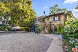 Tucked within one of Los Angeles' most rare and charming private landmark communitiesAtwater Bungalow, a ten-home enclave in the heart of Elysian Heightsthis handcrafted adobe residence blends Hopi-inspired design with storybook imagination. A true artistic retreat, the home offers a lifestyle that feels timeless, textured, and entirely removed from the ordinary. Thoughtfully designed across two fully self-contained levels connected by an exterior stairway, the layout offers flexible livingwhether as a single residence or an authentic duplex. The lower level features a copper-accented kitchen with hand-built cabinetry, terracotta tile floors, and a peaceful connection to the surrounding garden landscape. Two tranquil bedrooms are joined by a jewel-box powder room and a whimsical main bath adorned with hand-laid tile, vintage fixtures, and bold turquoise accents. A discreet laundry nook tucked behind French doors adds convenience with charm.Upstairs, the living room stuns with its sculptural fireplace, hand-troweled plaster walls, wide-plank floors, and treetop views framed by deep built-in shelving. A curved banquette breakfast nook, wrapped in sky-blue windows, is perfectly positioned to catch the morning light. The adjacent kitchen blends nostalgia and elegance, featuring polished copper countertops, crisp white cabinetry, and oversized custom windows framing leafy vistas. A spacious bedroom with pitched beamed ceilings completes the upper floor, paired with a second bath rich in 1930s tilework and artisan detailing. The outdoor spaces are just as inspiring. A rooftop terrace invites sunset toasts and stargazing under the canopy of mature trees, while a west-facing stone patio belowshaded by vines and surrounded by lush plantingsoffers the perfect setting for intimate outdoor gatherings. Set within a storybook garden and located inside a gated Historic-Cultural Landmark community, this home feels worlds away, yet remains just minutes from Sunset Boulevard, Echo Park Lake, Elysian Park, and the vibrant Eastside arts scene. As a creative refuge and simply a soulful place to call home, 1403 Avon Park Terrace is a rare opportunity to lease a property that doesn't just offer shelterit sparks the imagination. A chance to live inside a fairytale and experience a piece of Los Angeles history.