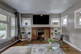 The kitchen features a high-end gas stove, double oven, and center island, perfect for cooking and gathering. Thoughtful touches like exposed brick and a farmhouse sink beneath the kitchen window give a nod to the home's historic charm.