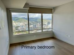 Enjoy gorgeous mountain views from this high unit on the 45th floor (just below the penthouse). Upgraded with new vinyl wood plank floors, freshly painted, new glass cooktop stove, refinished counters, custom blinds, microwave hood, dishwasher, washer/dryer, & central air conditioning. Great amenities! Pool, hot tub, sauna, 5 cabanas, dog park, theatre, & gym. Covered tandem parking T2102.