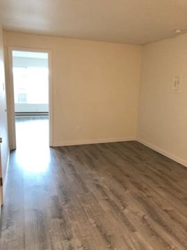 Apt. 108 has new luxury vinyl plank flooring and a wall to create a bedroom like sleeping area. This ground floor apartment has East facing windows and has been thoroughly cleaned and maintained. Equipped with a full size fridge, updated bathroom, and new kitchen sink this apartment is ready to go.