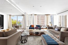 Exceedingly rare to find in this coveted Gramercy location, this sprawling five bedroom, five and a half bath duplex penthouse is filled with light all day and is offered fully furnished and in mint, turn-key condition, with top-of-the-line finishes throughout. Perfectly located at the center of downtown Manhattan, yet with easy access to midtown and beyond, 57 Irving Place is a boutique full-service condominium with only nine units. With 4,826 interior square feet, plus three outdoor terraces totaling 528 exterior square feet, this home has the perfect layout for indoor/outdoor living and entertaining. The key-locked elevator opens into a sun-flooded great room, with 100 linear feet of floor-to-ceiling windows facing east and west, framing city and sky views. A dramatic double-height entry hall is sure to impress, with nearly 20 ceilings and an architecturally impressive floating wood and metal staircase, leading to the bedroom floor above (also serviced by the elevator). With ample space and flexibility for multiple furnishing plans, the great room easily accommodates several seating areas, including a large living room, dining area, den, and a bar/lounge or study. This spectacular entertaining floor features 10 ceilings, a powder room, an ethanol fireplace, and wide plank wood floors. An east-facing set-back terrace spans the full 50-foot width of the great room, and has space for lounge seating and a dining area, as well as a built-in Viking grill. A smaller landscaped terrace off of the west side of the great room enjoys views of Union Square Park. At the southeast corner of the great room is the sleek chef s kitchen, featuring stainless steel appliances, including a Gaggenau refrigerator, a 48 Thermador cooktop, double Gaggenau ovens, double Miele dishwashers, a Viking wine refrigerator, as well as extensive custom cabinetry including two pantry pull-outs and an enclosed coffee station/appliance garage. The massive island provides plenty of counter space for meal prep, as well as counter-seating for six. Ideally located off of the kitchen is a vestibule with a private rubbish chute. Completing the lower level is the fifth bedroom, with its en-suite bath, currently used as a library/study but also perfect as a guest or staff suite. The elegant central staircase leads to the private wing, home to 4 en-suite bedrooms. The corner primary suite features a huge bedchamber with venetian plaster walls and a bleached oak wood-paneled ceiling, two spacious walk-in closets with extensive custom-fitted cabinetry, and a landscaped corner terrace looking west to Union Square. The luxurious en-suite bath is flooded with natural light from the large sliding glass wall opening onto the private terrace, and features a walk-in double rain-head shower, a freestanding soaking tub, as well as a marble and teak-clad steam room, and a double sink vanity with extensive storage. Down the hall are three additional bedrooms, each with en-suite baths as well as a generous laundry room. This beautiful home also features central air conditioning with 8 zones and fully automated audio/video, lighting, and window shades controlled through a Crestron Home Automation system. Designed by renowned modernist architect Audrey Matlock and completed in 2012, 57 Irving Place is a full service condominium. Amenities include a full time doorman, cold storage, and a backyard garden. Just south of Gramercy Park, 1 block from Union Square and its reno..