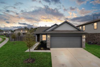 Welcome to this beautifully maintained single-story home on a spacious corner lot just minutes from The Woodlands! This 3-bed, 2-bath gem features decorative gray brick and an oversized yard perfect for entertaining. Inside, you'll find wood-look tile flooring throughout and an open-concept kitchen with quartz countertops, diagonal subway tile backsplash, stainless steel appliances, gas range, and a large island with breakfast bar. The kitchen opens to a bright living and dining space, ideal for everyday living and hosting. The private primary suite includes an ensuite bath with double sinks and a large walk-in shower. Additional highlights include a refrigerator, washer, and dryer, ample storage, and a two-car garage. Enjoy quick access to I-45, top-rated schools, shopping, and dining. This move-in-ready home offers style, comfort, and convenience—don’t miss it!