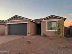 Brand new, move-in ready home in North Peoria's Retreat at Aloravita! This 3 bed + den, 2.5 bath single-story offers a modern farmhouse exterior, desert landscaping, and paver driveway. The open layout features a spacious kitchen with large island, walk-in pantry, gas range, and stainless steel appliances. Upgrades include 42'' white cabinets, Carrara Breeze quartz, white mosaic backsplash, wood-look tile in all common areas, and black fixtures. 4-panel sliding glass door leads to the backyard for indoor/outdoor living. Epoxy-coated garage floors and ceiling fans just completed! Brand new single-story home in North Peoria's Retreat at Aloravita!