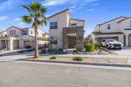 The second floor hosts the luxurious primary suite, complete with a walk-in closet and an en-suite bathroom featuring dual sinks, a soaking tub, and a separate shower. Additional bedrooms are generously sized, offering comfort and flexibility for guests or a home office. Outside, the backyard is a private oasis with a covered patio area perfect for entertaining or relaxing, surrounded by low-maintenance landscaping. With a two-car garage and situated in a desirable neighborhood, this home offers both convenience and style in the heart of Palm Desert.