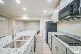 - Spacious kitchen equipped with an electric stove top, refrigerator, dishwasher, and microwave