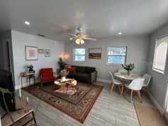 This very nice recently Updated two bedroom one bath apartment is in a quiet neighborhood on a large corner lot with lots of shade trees, private driveway, separate living room brand new kitchen cabinets and quartz countertops. Friendly small dogs welcome and cats that are fixed are welcome. The square footage listed is approximate.