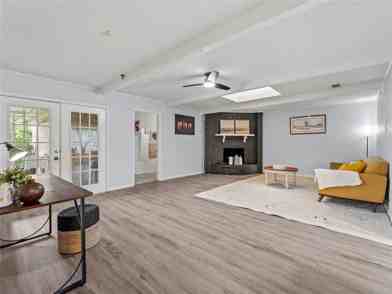 Charming Interior Features: The home offers 1,606 SqFt of living space with a single living area, a wood-burning fireplace with a gas starter, and simulated wood flooring.