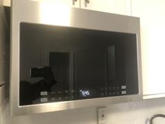 New stainless steel full size refrigerator, gas stove, & microwave.