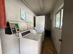 Laundry room in building.