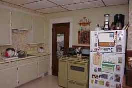 Inside, you'll find vintage touches throughout, like older wood trim, aged hardwood floors, and modest light fixtures that show some wear but give the place a bit of old-school character. The kitchen is functional but dated, with older cabinets, laminate counters, and basic appliances that might remind you of decades past.