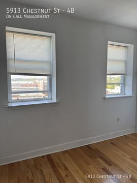 5913 Chestnut St #4B, Philadelphia, PA is a 1 bedroom, 1 bathroom apartment for rent. It is located in the Cobbs Creek neighborhood of Philadelphia. It has apartment amenities including in-unit laundry, balcony, on-site laundry, hardwood floor, air conditioning, dishwasher, microwave, and outdoor space. Cats and dogs are allowed, making it a pet-friendly apartment.
