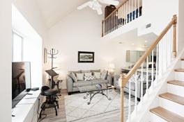 Step inside to find luxury vinyl plank flooring and an open living room that flows seamlessly into the eat-in kitchen, complete with stainless steel appliances. The main floor features a spacious primary bedroom with a walk-in closet and en-suite bath. Upstairs, you'll find a comfortable second bedroom, another full bathroom, and a versatile loft area – perfect for a home office. A full-size washer and dryer are included.