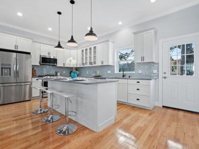 This beautifully crafted new construction townhome offers the perfect blend of top-tier craftsmanship and contemporary living. Designed with an open floor plan, the home features high ceilings, elegant crown moldings, and gleaming hardwood floors throughout. The bright and inviting living room with a cozy fireplace seamlessly flows into the dining area and a chef's kitchen, complete with quartz countertops, a spacious island, stainless steel appliances, and access to a private balcony.