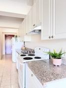Controlled access, Dishwasher, Heat, Kitchen island, Linen closet, Mirrors, Refrigerator, Storage space, Stove and oven, Tile floors, Vaulted ceiling, Vinyl floors