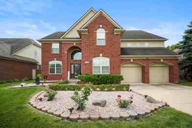 LIMITED-TIME $1,000 MOVE-IN CREDIT for lease signed by Nov 1! PRICE IMPROVED - NOW $3,400/month! Beautifully maintained 5BR, 3.5BA colonial in Macomb's Cornerstone Village, offering 4,404 SF of light-filled, living space. Open floor plan with soaring ceilings, large family room w/fireplace, formal dining, kitchen w/island, granite, and stainless appliances. Main-level office plus finished lower level with egress window, theatre, game room & 5th bedroom-ideal for guests, fitness, or flex space. Primary suite features walk-in closets, spa bath, private balcony & bonus room perfect for nursery or second office. Three-car tandem garage w/Level 2 EV charger. Patio and landscaped yard ideal for gatherings. Great location near M-59 (Hall Rd), shopping, restaurants & Chippewa Valley Schools. Back on market and ready for quick occupancy - Don't miss out on this gem! $3,400/mo | 12-mo lease | 1.5 mo sec dep | No smoking | Pets negotiable w/additional fee. Apply on RentSpree link