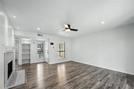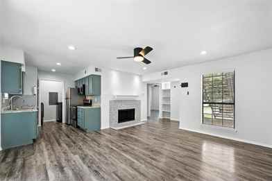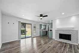 Enjoy modern living with granite countertops, stainless steel appliances, including a Whirlpool refrigerator, Frigidaire dishwasher, stove, and Samsung microwave — perfect for easy everyday cooking. Multiple windows provide generous natural lighting. This unit also features a built-in bookshelf, super-size Samsung washer and dryer, bright white recessed lighting throughout, ceiling fans with remote controls, luxury vinyl plank floors, a glass shower door, cozy fireplace, and a back patio — ideal for relaxing or entertaining guests.