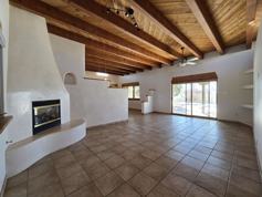 Welcome home to the community of Eldorado of Santa Fe. This spacious three bedroom, two bathroom house is updated and inviting, with high ceilings through the generous living spaces. The vigas on the wooden ceilings create a charming New Mexico feel as soon as you walk in the doors. The kiva gas fireplace will keep you cozy and warm in the winter, along with in-floor radiant heat. The main bedroom with an ensuite bathroom is separated from the two additional bedrooms and the secondary bathroom. There are closets galore in this home, along with a two car garage with great storage space. The main bedroom has a walk-in closet and a bonus area for flexible use. There is a laundry room with more storage, and all the appliances in the home are updated, with a gas stove in the enormous kitchen, and granite countertops providing ample workspace. The front door and back door invite you outside with roomy and shady portals. The home is on the corner of two residential roads, with native NM plants across the landscape. The adobe-walled backyard features several shady trees and flower gardens, offering space to sit and listen, dream, watch, and breathe peacefully. The home is in a quiet neighborhood where wildlife may roam between homes, and the dark skies give you the gift of stars. Just 15-20 minutes from Santa Fe, this peaceful and comfortable retreat has a lot to offer.