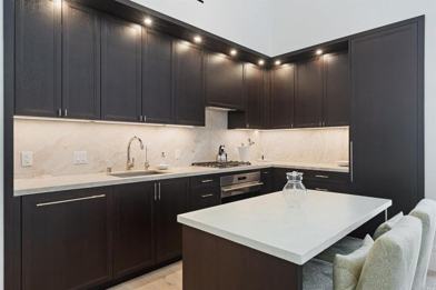 This gorgeous unit offers elegance and high end finishes such as Venetian plastered walls, silk Roman shades, French oak flooring and approximately eleven ft. ceilings. The kitchen features a custom center island, Italian cabinetry, Wolf and Subzero appliances.
